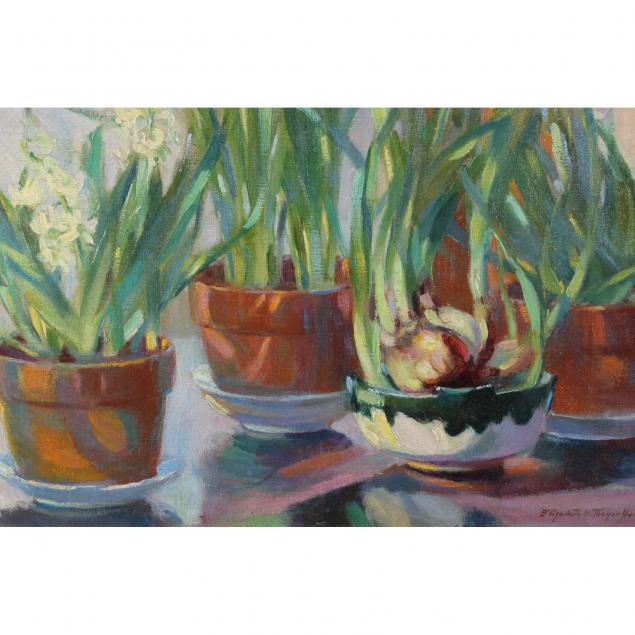 Oil on canvas, signed at lower right "Elizabeth H. Thayer Huntington," presented in a gilt frame.
