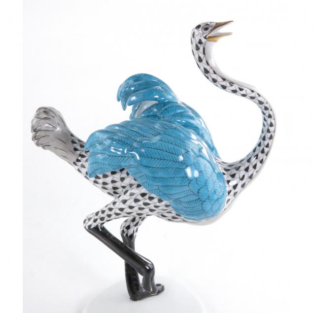 Black fishnet with aqua blue wings, open beak, #15482, on platform base.