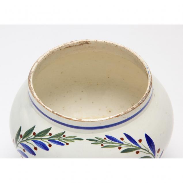 Mid19th century, bulbous form supported by a short pedestal base, hand-painted and labeled for contents of orange and apple preserves.