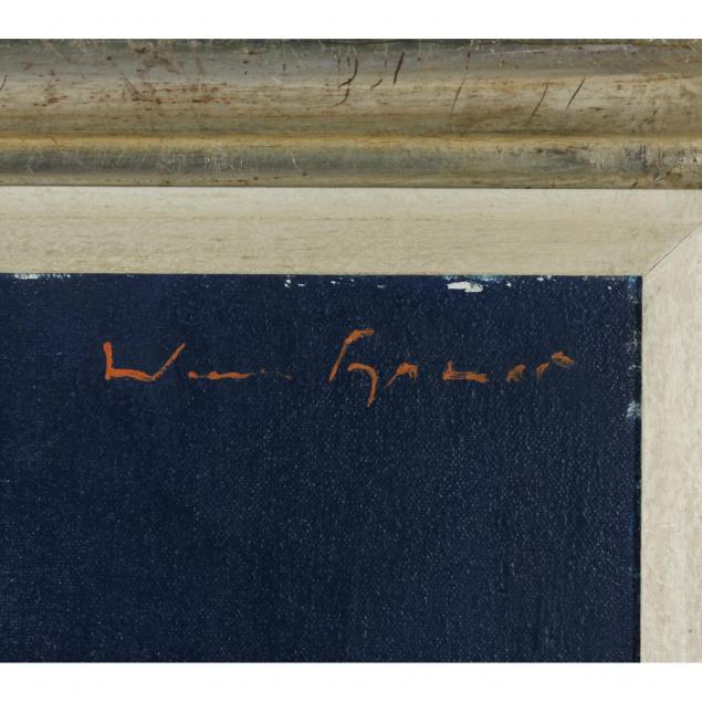 Oil on canvas, signed at upper right, titled and inscribed by the artist on the verso, presented in a very fine contemporary silvered frame.