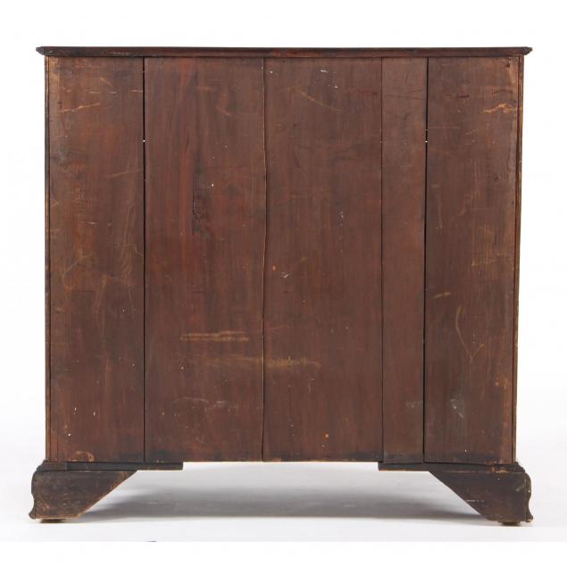 Mahogany, mahogany veneers, oak and pine secondary, four graduated cock beaded drawers, molded base with ogee bracket feet.