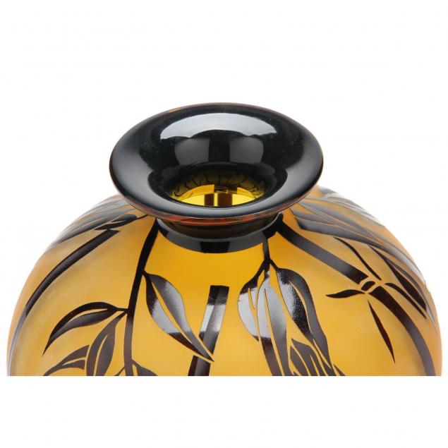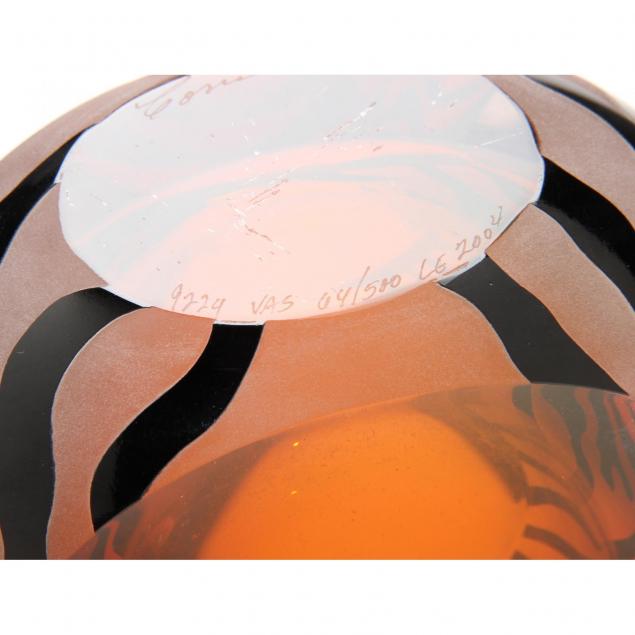 2004, each with cut cameo decoration, including a Bamboo vase and a Tiger Tuxedo cased glass vase, each signed from a limited edition.