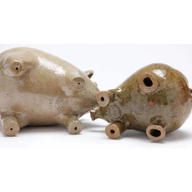 Jugtown Pottery, Seagrove, NC, stoneware pigs, both with Jugtown stamp.