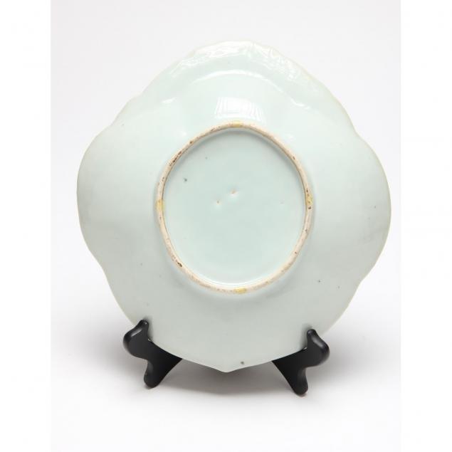 Famille Rose, an early 19th century shell form finely painted with peonies on the handle and raised enamel design to the background, excellent detail to butterfly wings and ladies hair ornaments.