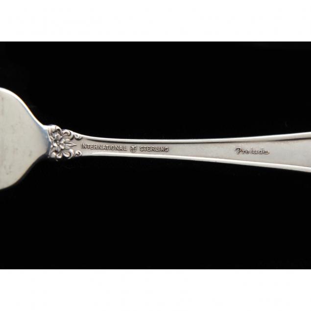 (81) pieces including: (2) knives (9.5 in.); (19) knives (9 1/8 in.); (2) forks (7 7/8 in.); (19) forks (17.25 in.); (32) teaspoons; (2) iced tea spoons; (2) soup spoons; and (3) tablespoons. Sold in a fitted flatware chest. No monograms.