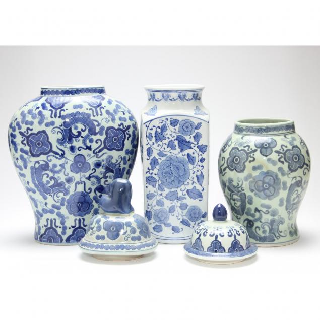 To include two lidded urns, a vase and a bird house with iron hanging hook.