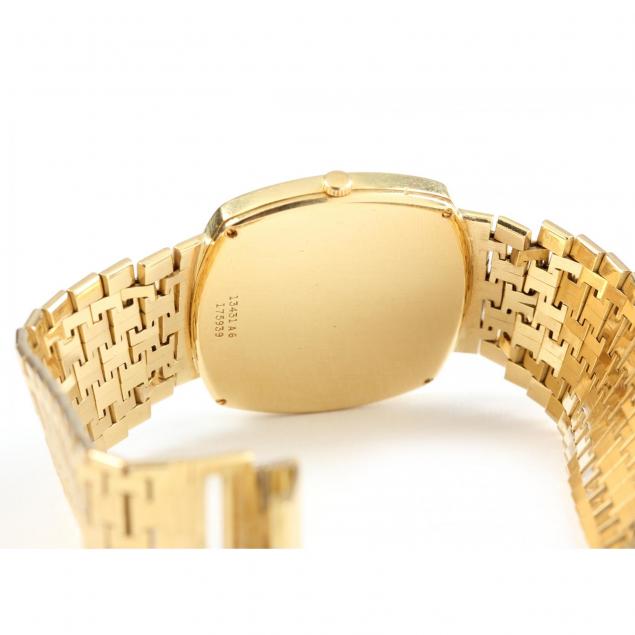 Good cosmetic condition and currently running; bracelet band loose at lug juncture; recently serviced at Piaget, NYC. Please see Terms and Conditions of Sale: Clocks and Watches.