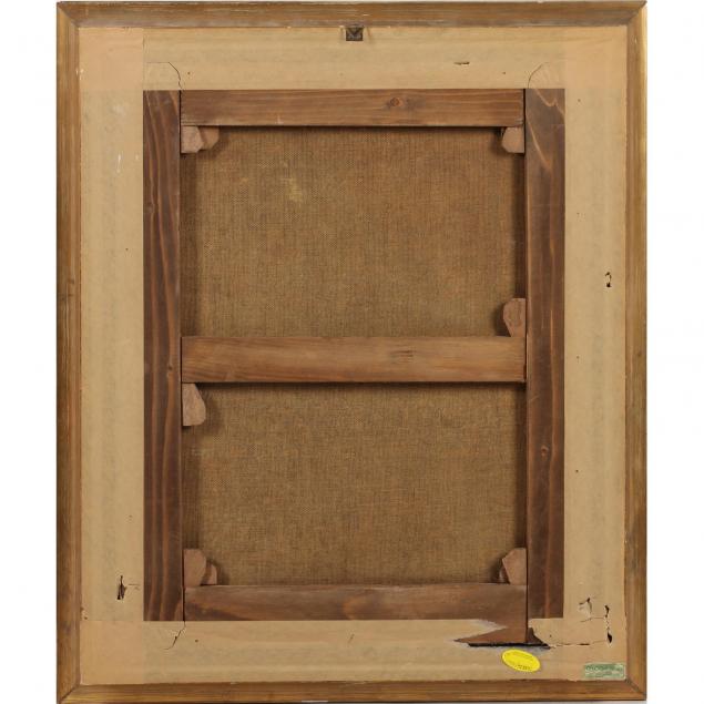 Oil on canvas (lined), unsigned, mid-19th century, the little girl in a white dress and standing beneath a drapery, presented in a later gilt frame.