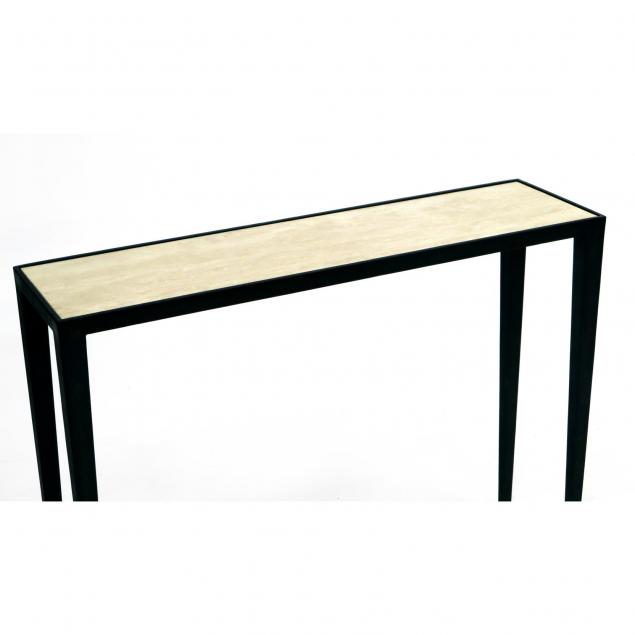 Late 20th century, black painted iron with square tapered legs, unmarked.