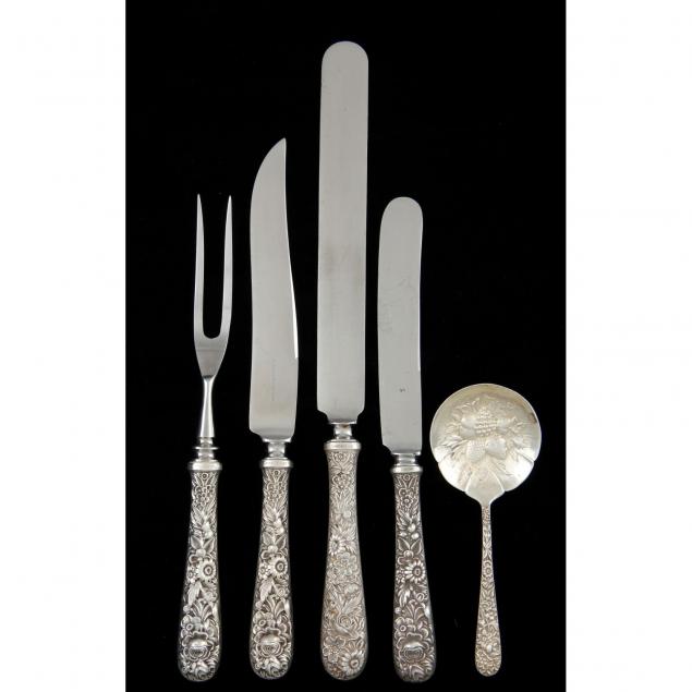 (33) pieces including (11) knives (8 7/8 in.), (7) forks (7.25 in.), (9) butter spreaders, boullion soup spoon, sugar spoon, two piece carving set, bon bon scoop and a serving knife (11.25 in.).