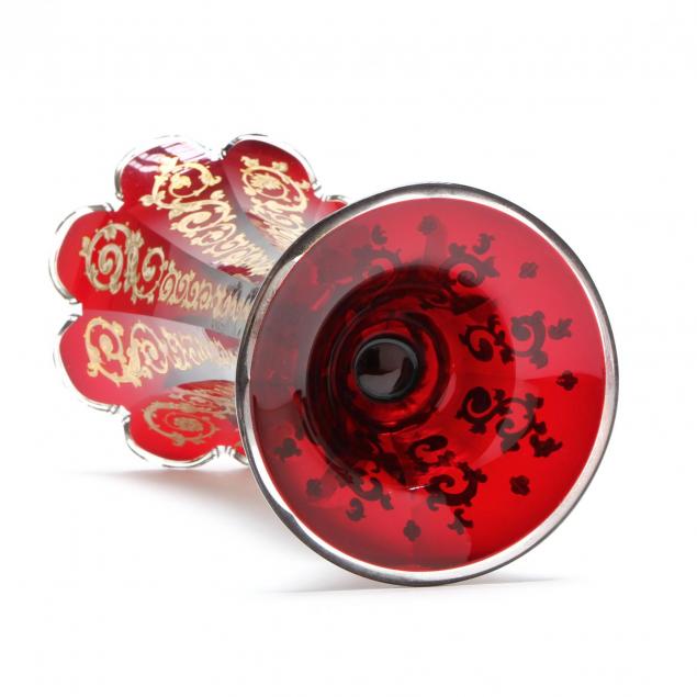 19th century, gilt enameled trumpet vase, scalloped rim, circular foot.