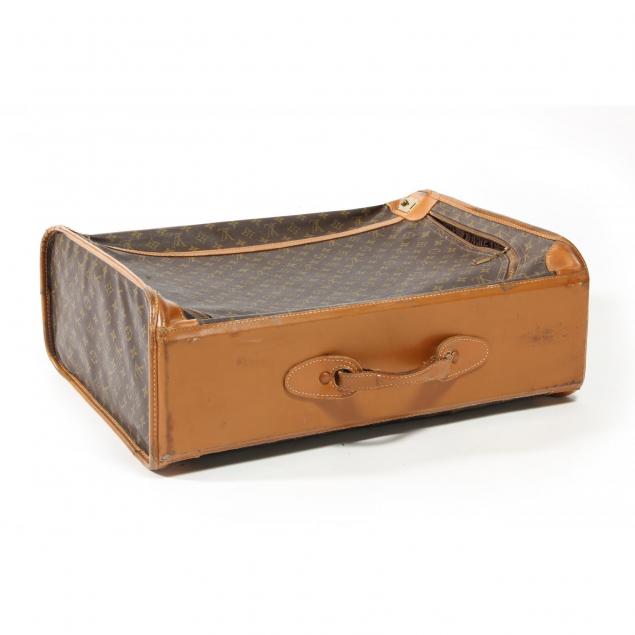 Made in the United States, 1976-1991, soft sided luggage composed of monogram canvas, three-quarter zipper to one side, fabric interior with elasticized side pockets and restraining straps. One case retains original French Company label. A sophisticated travel duo!
