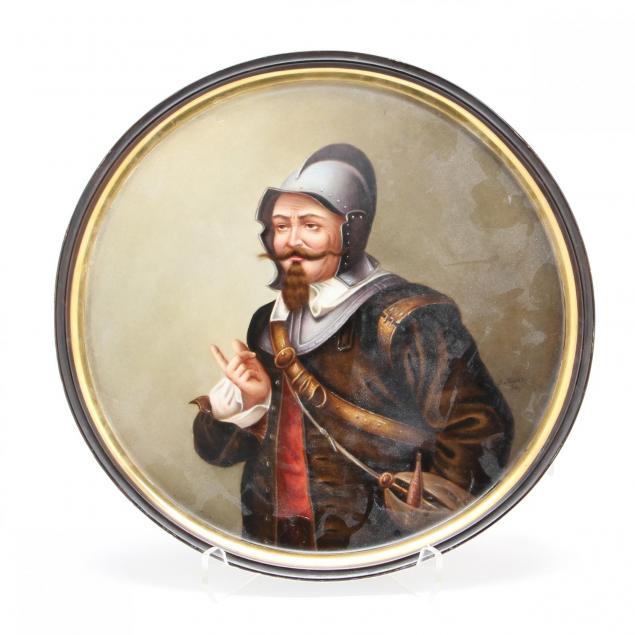 19th century, painted with portrait of a soldier, signed "E. Heuhter" and dated 84 lower right, impressed mark to underside.