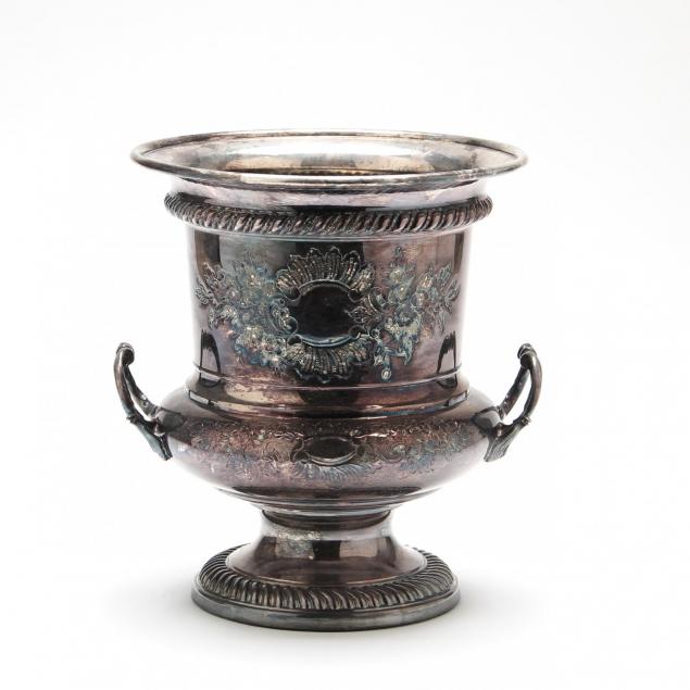 Mid 20th century, Rococo style engraved designs, double handled, weighted base, marked.