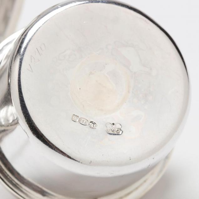 The stand and kettle with sponsor's mark for D. & J. Welby Ltd., the kettle also with Dominick & Haff sterling silver hallmark and dated 1883, both with Shreve, Crump & Low retailer's mark, ebonized handle, with original burner.