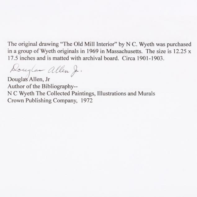 Accompanied by a certificate signed by Douglas Allen, Jr. confirming that this is an original drawing by N. C. Wyeth and was purchased in a group of Wyeth originals in 1969 in Massachusetts. Mr. Allen, author of