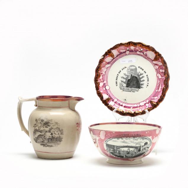 A west view of the cast iron bridge over the River Wear built by R. Burdon Esq., and the third a plate featuring a portrait of the Reverend John Wesley in profile (8.5 in. diameter).