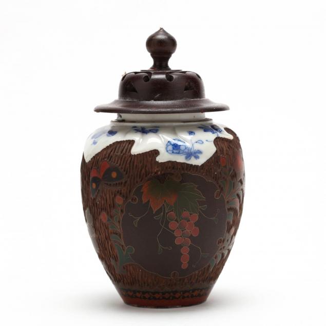 two-japanese-tree-bark-cloisonne-items
