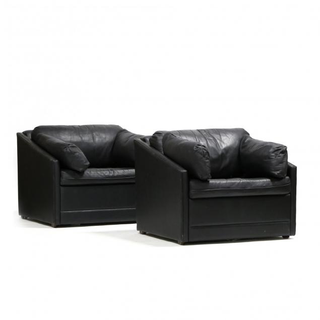 Contemporary, slate color leather, with pull-out single beds, labeled.