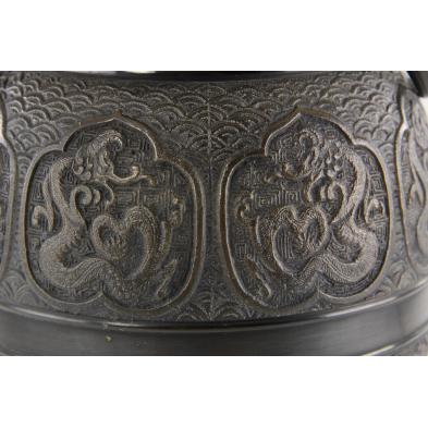 With double ring handles, hardwood base, archaistic style decoration.
