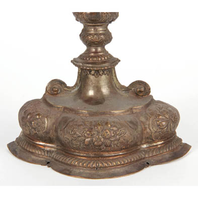 (3) reliquaries, late19th - early 20th century, the first, of silvered brass over wood, incorporates five glass-covered thecas containing a total of thirteen named relics (13.75 in.) (top is loose; surmounting cross no longer present); the second, of silverplate, holds a relic of American Saint Frances Xavier Cabrini (6.5 in.); the third, of brass, is labeled "Sti Vincentii a p. (9 in.).