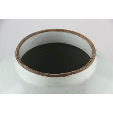 Some rubbing to the decoration on the lid; the floral lid with large chip; the figural lid with two small edge chips; vase with children has a rim chip; vase with mythical beast has several glaze chips near base.