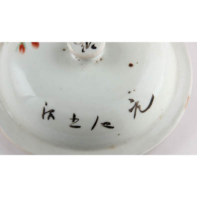 19th century, of baluster form, hand-decorated with finely detailed figural scenes and verses of poetry, with domed lids.