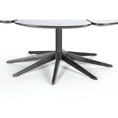 "Richard Schultz cites Queen Anne's Lace as his inspiration for this delicate outdoor table with its flower-like top sprouting from the elegant pedestal base. Each "petal" expands and contracts independently, ensuring stability in changing weather." -Knoll