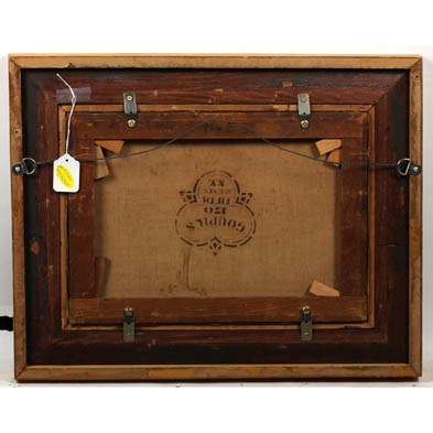 Oil on canvas, signed and dated "J. Finck 1879" at lower right, a Union regiment is formed by company for parade in front of their tents, officers are to the fore while drummers are clustered to one side. The scene is likely Camp Hill in Harpers Ferry, Virginia, with hilltop earthworks beside what is likely the US Armory Paymaster's quarters (Lockwood House). This hill and house would later become Storer College, the first black college in the United States. Presented in a period 19th century frame.