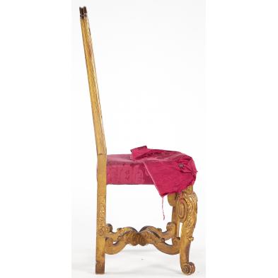 The Collection of Mr. and Mrs. Thomas Jefferson Penn, Reidsville, NC Later upholstered seat and cushion with fraying and loss; areas of gilt wear; minor hairline and chipping to frame.