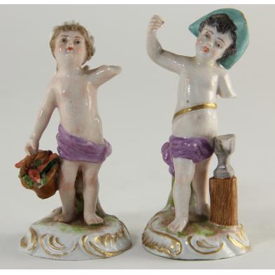 Circa 1775-1820, by Faubourg St. Antoine, each cupid depicted in a different pursuit, each marked with blue crossed arrow.