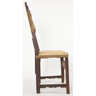 The Collection of Mr. and Mrs. Thomas Jefferson Penn, Reidsville, NC Both chairs with upholstery wear and loss; the side chair with break to rear stile and later braces; both chairs with worm damage.