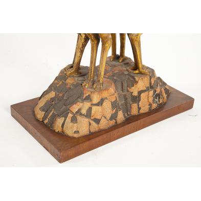 The Collection of Mr. and Mrs. Thomas Jefferson Penn, Reidsville, NC Some veneer cracks, loss and molding loss; one crane with repaired leg; rock form plinth with paint loss.