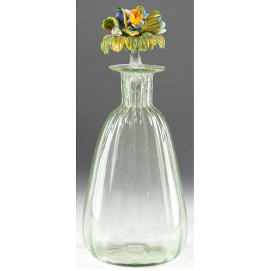 Hand blown pale green glass, with multi-color floral and foliate stopper.