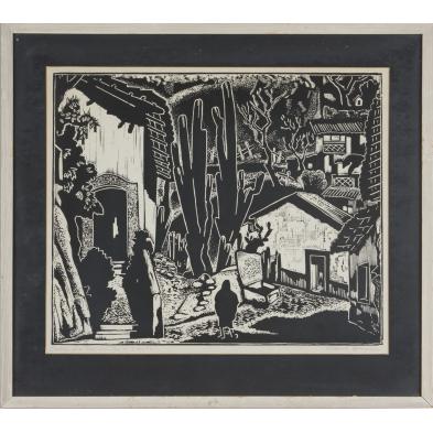 The titles included are "Callejon del Arco - Tasco," "Callejon Nogal Tasco," and "Calle ex Convento Tasco." Each print is signed in the woodblock and in pencil along the lower margin. Each is matted and framed under glass.