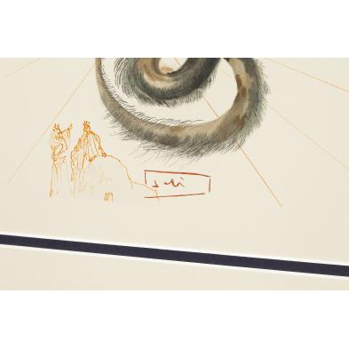 Including a double plate from THE DIVINE COMEDY: PURGATORY, "The Black Cherub" - one in black and white, the other in color, each signed in the plate, matted and framed under glass. DOA 23 x 32 in.; Each plate 10 x 7.5 in.