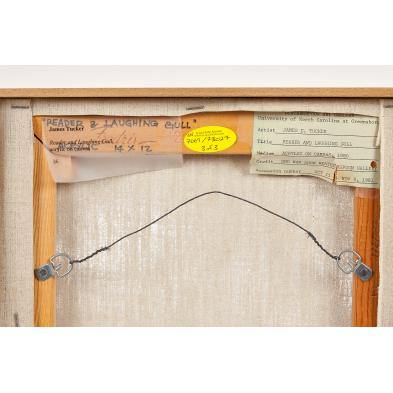 Including "Beach Couple" 1980, acrylic on canvas, signed lower left, simple wood frame, Weatherspoon Gallery Label en verso, DOA 18.75 x 20.5 in.; "Bikini Beach" 1981, acrylic on canvas, signed lower left with simple wood frame, Weatherspoon Gallery Label en verso, DOA 20.5 x 18.5 in.; and "Reader and Laughing Gull" 1980, acrylic on canvas, signed lower right with simple wood frame, Weatherspoon Gallery Label en verso, DOA 14.5 x 12.75 in.
