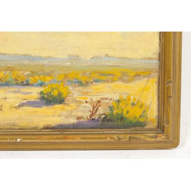 Oil on board, signed "M C Smith" at lower right, early to mid-20th century, presented in a period gold painted wooden frame. SS 12 5/8 x 15.5 in.; DOA 15 in x 17 13/16 in.