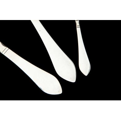 (8) serving pieces including: cheese scoop; large serving fork (10 in.); large serving spoon (10 1/8 in.); medium serving spoon (9 in.); (3) piece large carving set; and roast fork (9 in.).