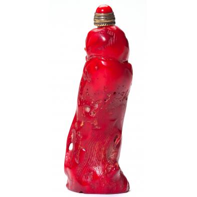 Early 20th century, in the form of a jovial Buddha, well-hollowed with coral top and brass spoon.