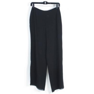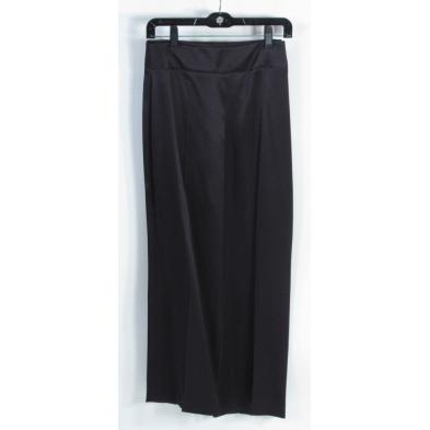 Five pieces to include: a dark purple jacket, a pair of dark purple silk pants, two pairs of black pants, and a brown wool skirt.