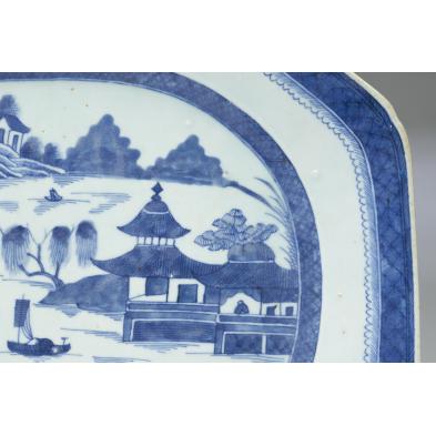 Circa 1830, large size of oval form featuring canted corners with well-painted scene to center.
