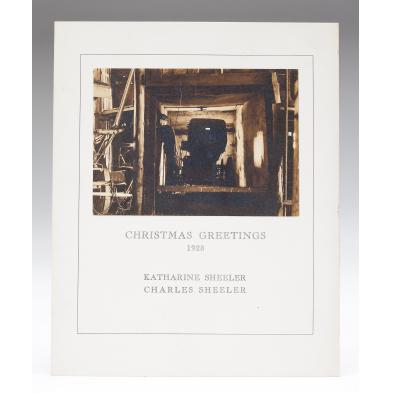 Gelatin silver print on original cardstock mount, printed "Christmas Greetings / 1928 / Katharine Sheeler / Charles Sheeler," inscribed on the verso "by Charles Sheeler." Image 3 3/8 x 4 5/8 in.; Paper 8 x 6.5 in.