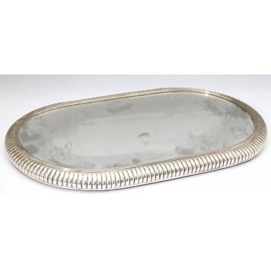 Each of .800 silver with hallmarks for Gebr. Friedlaender, the lozenge form center bowl with open cartouches and raised on floriform peg feet, complete with conforming mirrored plateau and original brass liner. Bowl 5.25 x 17.75 x 9.5 in.; Plateau 20.5 x 12.5 in.