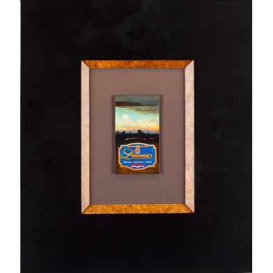 The first inscribed by the artist on the verso "Lancaster's / Matchbook Series / 'Stuck in the Mud' / 11-17-06 / Acrylic on Matchbook / 2006," artist signed, mounted in a black frame (DOA 13.25 x 11.25 in.); the second titled "October Eve: Bloomington," watercolor on paper, signed and dated '99, matted and framed under glass (DOA 11 x 13 in.).