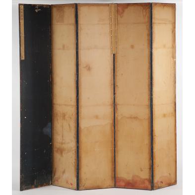 Reverse without decoration; fair condition; piercing, tears, and wear to each panel. Currently in two separate five-panel units.