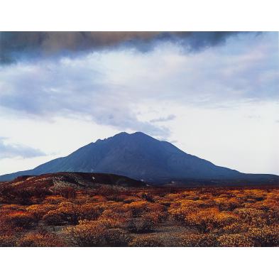 Dye transfer print, retaining label on the verso reading "Sunset behind Las Tres Virgenes Volcano, Near Mezquital, Baja, California, August 22, 1962," from a portfolio published by Daniel Wolf Press in 1981, edition of 300, print made by Berkey K & L in New York, pencil signed on the mount, matted and framed. Image 12 3/8 x 16 in.; DOA 21.25 x 25.25 in.