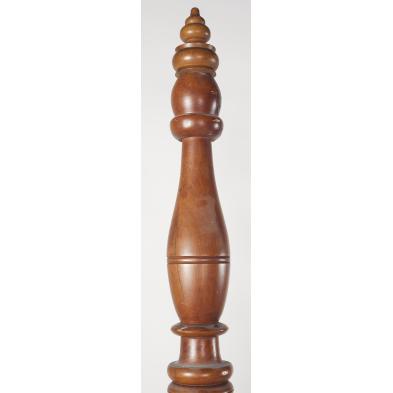 With yellow pine secondary, having baluster and spiral twist posts over pineapple carved blocks flanking shaped head and foot boards with 3/4 turned crest rails and ring turned terminus, turned bolt covers, some lacking, raised on robustly turned feet. Interior dimensions: 79 x 49.5 in.