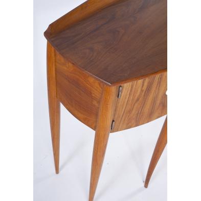 (Providence, Rhode Island; b. 1952) East Indian rosewood with bird's eye maple secondary, the piece enhanced by silver hardware, circular bone-back plates.