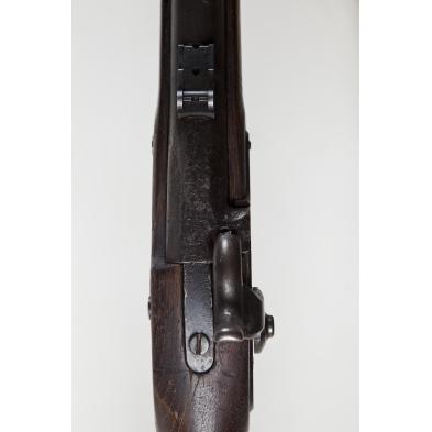 Percussion, .58 caliber, walnut stock, 40 in. barrel secured by three bands, 56 in. overall length, iron furniture throughout, lockplate marked U.S. / SPRINGFIELD with 1864 production date behind the hammer, early tulip-head ramrod. Complete with socket bayonet marked U.S.